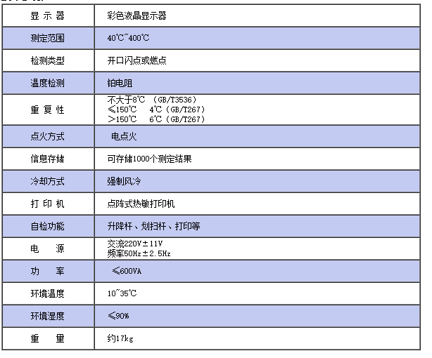 KLK301開口閃點自動測定儀是采用ARM微處理器技術設計的一款新型閃點自動測定儀。該儀器采用大屏幕彩色液晶顯示,中文菜單觸摸屏控制,完全電點火方式。具有自動升溫,自動劃掃,自動點火,標準程序適時選擇,溫度自動跟蹤顯示,自動鎖定閃點值并自動打印結果,大氣壓校正和強制風冷功能。 該儀器結構合理、操作簡單,測定結果穩定可靠是開口閃點測定的理想儀器,儀器廣泛運用于電力、石油、化工、科研等部門。 符合標準GB/T3536-2008、GB/T267-88。 技術參數: