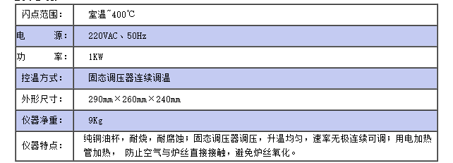 儀器符合GB/T3536;GB/T267;ASTMD92標準,適用于測定石油產品的閃點和燃點,但不適用于測定燃料油的開口閃點低于79℃石油產品。儀器采用固態(tài)調壓器,用調節(jié)旋鈕調節(jié)電爐電壓從而實現按標準要求的升溫速度。